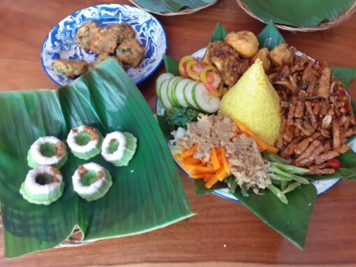 In this Yogyakarta cooking class, you will discover the beauty of Indonesian food culture in the most engaging way. Guided by friendly local chefs, you will prepare “Tumpeng,” the iconic yellow rice shaped like a mountain, accompanied by traditional side dishes such as bakwan tahu, gudangan, chicken galangal, oseng tempe, and the sweet delicacy putu ayu. The morning begins with hotel pick-up and a colorful market tour, where you handpick your ingredients while soaking in the sights and aromas of daily life. Soon after, the kitchen becomes your stage to learn, cook, and share. Finally, you sit down to savor your own creations, turning your morning journey into a heartwarming meal that reflects the culture and kindness of Yogyakarta.